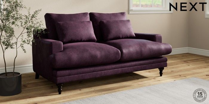 7.0.3 Buy Hutton Deep Relaxed Sit 3 Seater Small Sofa Plush Chenille Dark Plum Purple Country Turned - Dark from the Next UK online shop Click here to use our accessible website