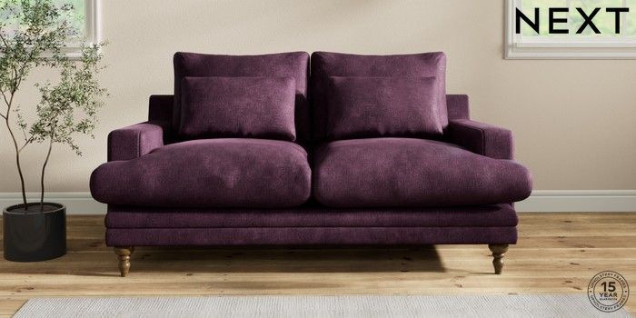 6.12.1 Buy Hutton Deep Relaxed Sit 3 Seater Small Sofa Plush Chenille Dark Plum Purple Country Turned - Mid from the Next UK online shop Click here to use our accessible website