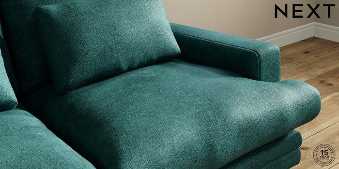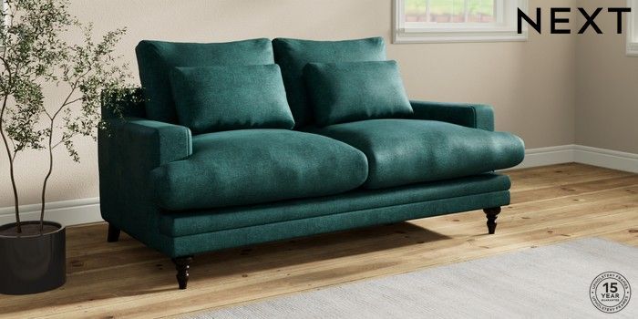 7.0.3 Buy Hutton Deep Relaxed Sit 3 Seater Small Sofa Plush Chenille Dark Teal Green Country Turned - Dark from the Next UK online shop Click here to use our accessible website