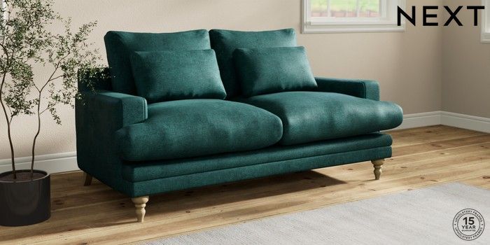7.0.3 Buy Hutton Deep Relaxed Sit 3 Seater Small Sofa Plush Chenille Dark Teal Green Country Turned - Light from the Next UK online shop Click here to use our accessible website