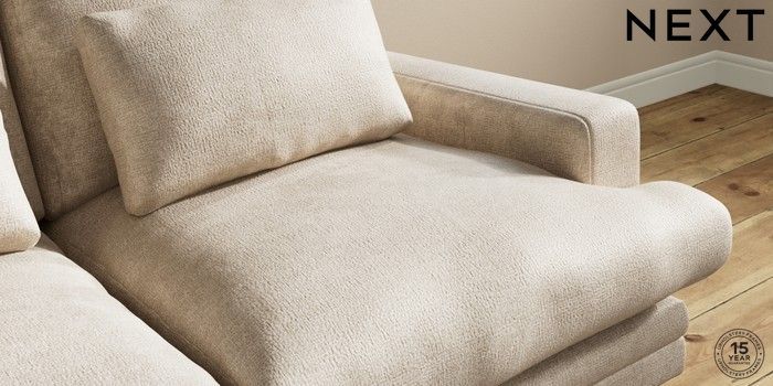7.0.3 Buy Hutton Deep Relaxed Sit 3 Seater Small Sofa Plush Chenille Light Natural Country Turned - Mid from the Next UK online shop Click here to use our accessible website