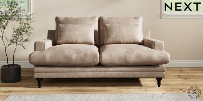 6.12.1 Buy Hutton Deep Relaxed Sit 3 Seater Small Sofa Plush Chenille Mid Natural Country Turned - Dark from the Next UK online shop Click here to use our accessible website