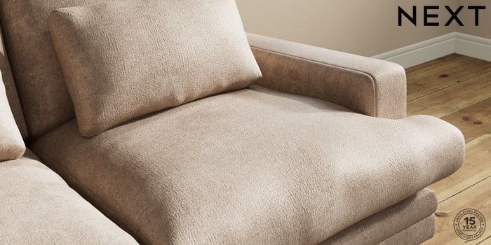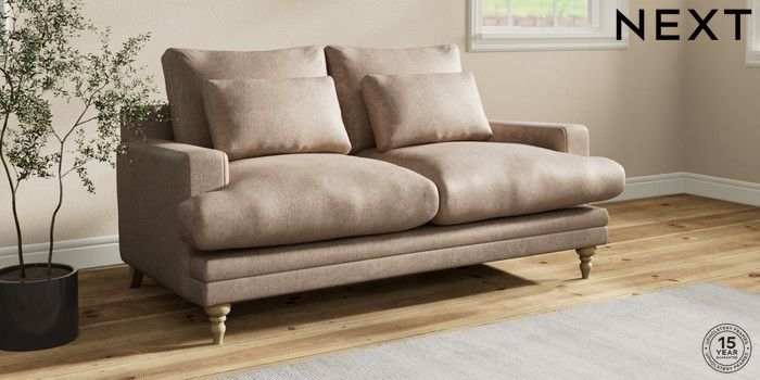 7.0.3 Buy Hutton Deep Relaxed Sit 3 Seater Small Sofa Plush Chenille Mid Natural Country Turned - Light from the Next UK online shop Click here to use our accessible website