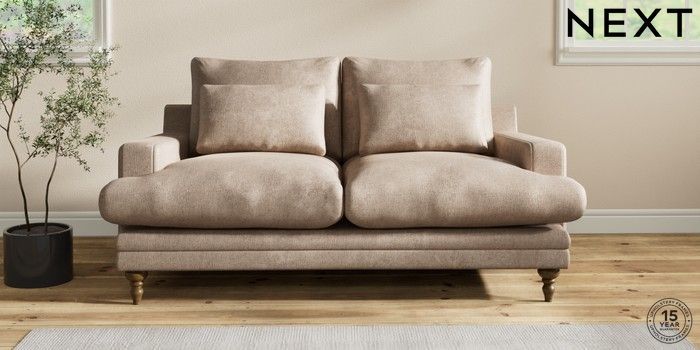6.12.1 Buy Hutton Deep Relaxed Sit 3 Seater Small Sofa Plush Chenille Mid Natural Country Turned - Mid from the Next UK online shop Click here to use our accessible website