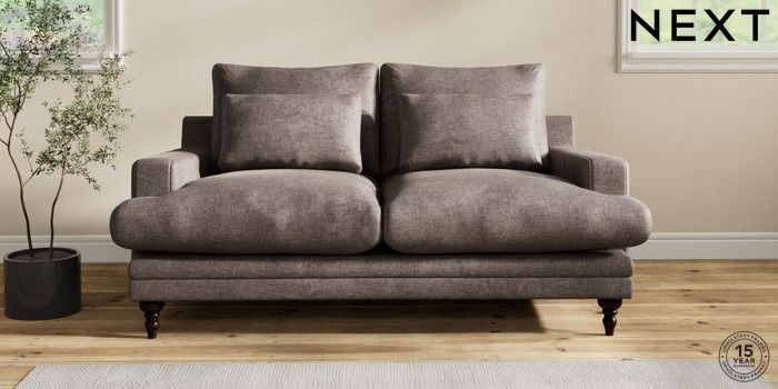 6.12.1 Buy Hutton Deep Relaxed Sit 3 Seater Small Sofa Plush Chenille Mink Brown Country Turned - Dark from the Next UK online shop Click here to use our accessible website