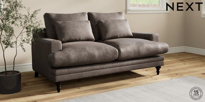 7.0.3 Buy Hutton Deep Relaxed Sit 3 Seater Small Sofa Plush Chenille Mink Brown Country Turned - Dark from the Next UK online shop Click here to use our accessible website