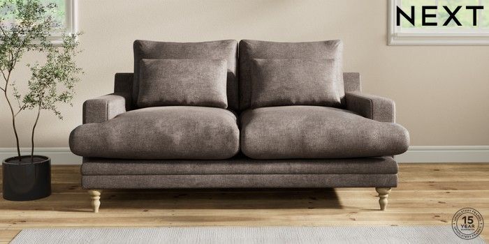 6.12.1 Buy Hutton Deep Relaxed Sit 3 Seater Small Sofa Plush Chenille Mink Brown Country Turned - Light from the Next UK online shop Click here to use our accessible website