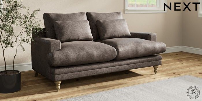 7.0.3 Buy Hutton Deep Relaxed Sit 3 Seater Small Sofa Plush Chenille Mink Brown Country Turned - Light from the Next UK online shop Click here to use our accessible website