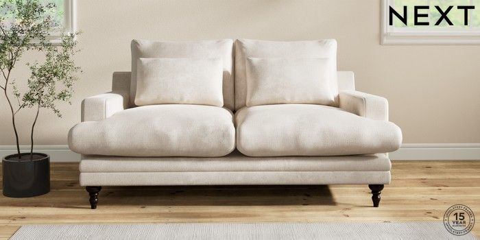 6.12.1 Buy Hutton Deep Relaxed Sit 3 Seater Small Sofa Plush Chenille Oyster Country Turned - Dark from the Next UK online shop Click here to use our accessible website