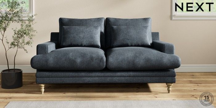 6.12.1 Buy Hutton Deep Relaxed Sit 3 Seater Small Sofa Plush Chenille Slate Blue Country Turned - Light from the Next UK online shop Click here to use our accessible website