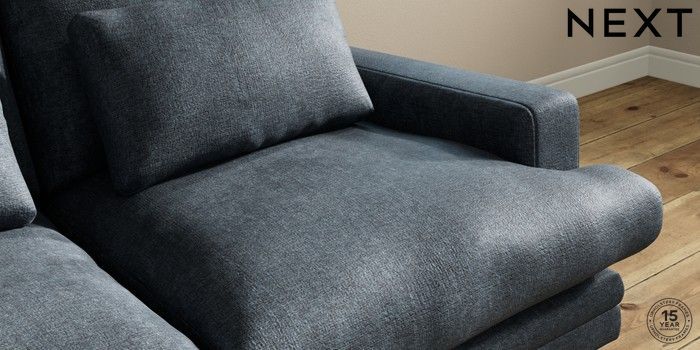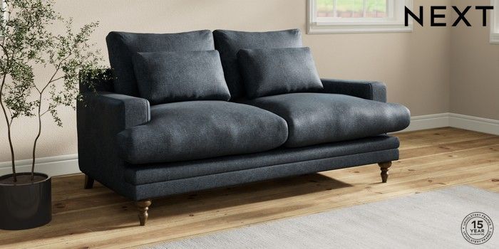 7.0.3 Buy Hutton Deep Relaxed Sit 3 Seater Small Sofa Plush Chenille Slate Blue Country Turned - Mid from the Next UK online shop Click here to use our accessible website