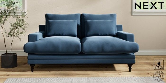 6.12.1 Buy Hutton Deep Relaxed Sit 3 Seater Small Sofa Plush Velvet Easy Clean Airforce Blue Country Turned - Dark from the Next UK online shop Click here to use our accessible website