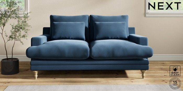 6.12.1 Buy Hutton Deep Relaxed Sit 3 Seater Small Sofa Plush Velvet Easy Clean Airforce Blue Country Turned - Light from the Next UK online shop Click here to use our accessible website