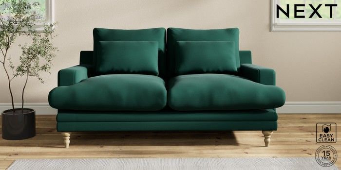 6.12.1 Buy Hutton Deep Relaxed Sit 3 Seater Small Sofa Plush Velvet Easy Clean Bottle Green Country Turned - Light from the Next UK online shop Click here to use our accessible website