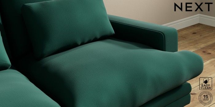 7.0.3 Buy Hutton Deep Relaxed Sit 3 Seater Small Sofa Plush Velvet Easy Clean Bottle Green Country Turned - Mid from the Next UK online shop Click here to use our accessible website