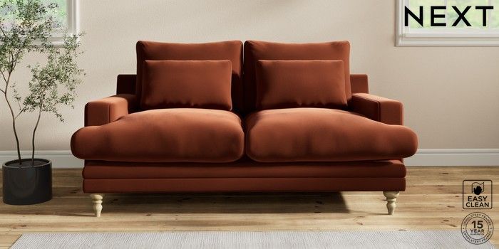 6.12.1 Buy Hutton Deep Relaxed Sit 3 Seater Small Sofa Plush Velvet Easy Clean Ginger Orange Country Turned - Light from the Next UK online shop Click here to use our accessible website