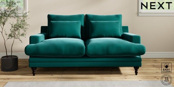6.12.1 Buy Hutton Deep Relaxed Sit 3 Seater Small Sofa Plush Velvet Easy Clean Juniper Green Country Turned - Dark from the Next UK online shop Click here to use our accessible website