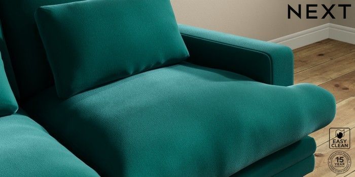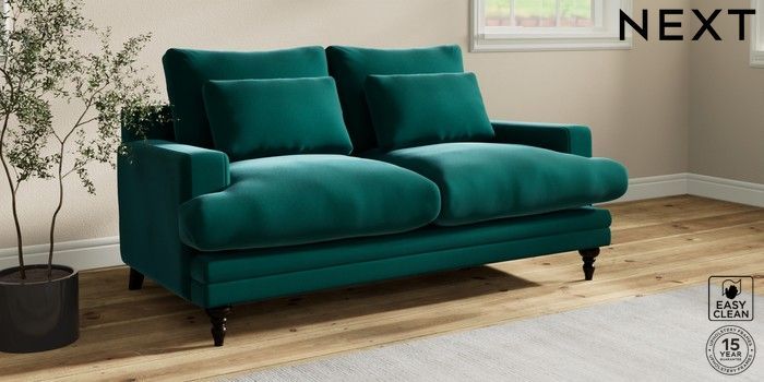 7.0.3 Buy Hutton Deep Relaxed Sit 3 Seater Small Sofa Plush Velvet Easy Clean Juniper Green Country Turned - Dark from the Next UK online shop Click here to use our accessible website