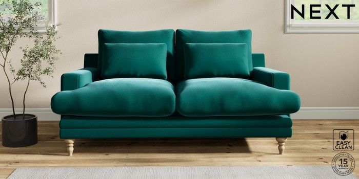 6.12.1 Buy Hutton Deep Relaxed Sit 3 Seater Small Sofa Plush Velvet Easy Clean Juniper Green Country Turned - Light from the Next UK online shop Click here to use our accessible website