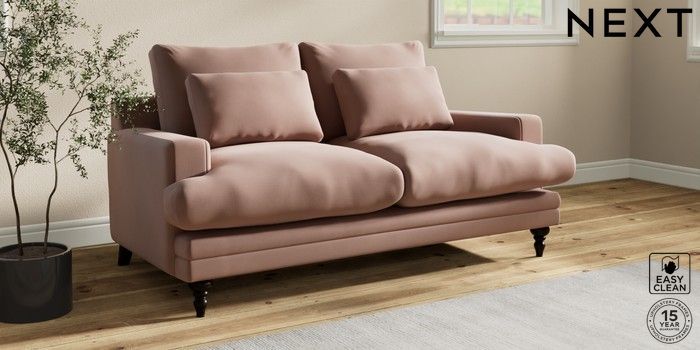 7.0.3 Buy Hutton Deep Relaxed Sit 3 Seater Small Sofa Plush Velvet Easy Clean Mid Natural Country Turned - Dark from the Next UK online shop Click here to use our accessible website