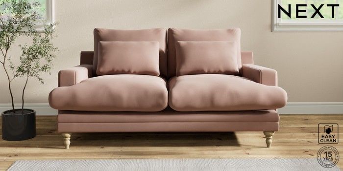 6.12.1 Buy Hutton Deep Relaxed Sit 3 Seater Small Sofa Plush Velvet Easy Clean Mid Natural Country Turned - Light from the Next UK online shop Click here to use our accessible website