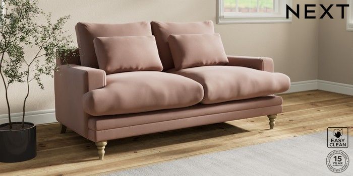 7.0.3 Buy Hutton Deep Relaxed Sit 3 Seater Small Sofa Plush Velvet Easy Clean Mid Natural Country Turned - Light from the Next UK online shop Click here to use our accessible website