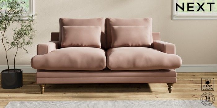 6.12.1 Buy Hutton Deep Relaxed Sit 3 Seater Small Sofa Plush Velvet Easy Clean Mid Natural Country Turned - Mid from the Next UK online shop Click here to use our accessible website