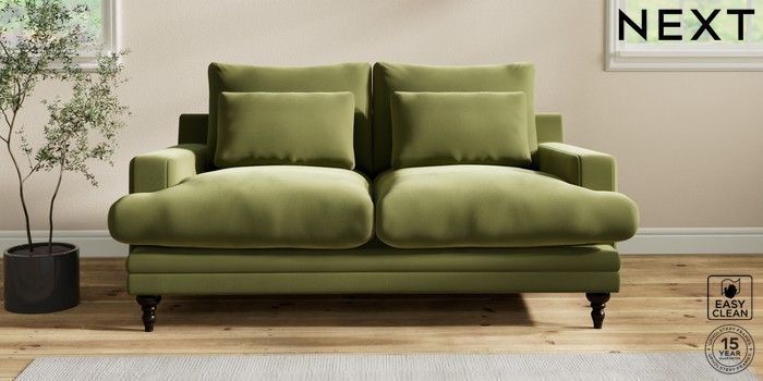 6.12.1 Buy Hutton Deep Relaxed Sit 3 Seater Small Sofa Plush Velvet Easy Clean Mid Olive Green Country Turned - Dark from the Next UK online shop Click here to use our accessible website