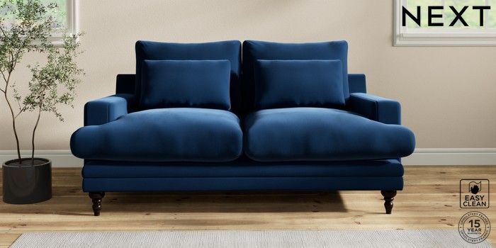 6.12.1 Buy Hutton Deep Relaxed Sit 3 Seater Small Sofa Plush Velvet Easy Clean Navy Blue Country Turned - Dark from the Next UK online shop Click here to use our accessible website