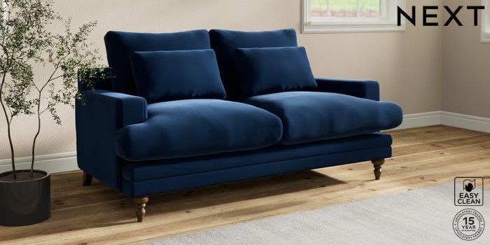 7.0.3 Buy Hutton Deep Relaxed Sit 3 Seater Small Sofa Plush Velvet Easy Clean Navy Blue Country Turned - Mid from the Next UK online shop Click here to use our accessible website