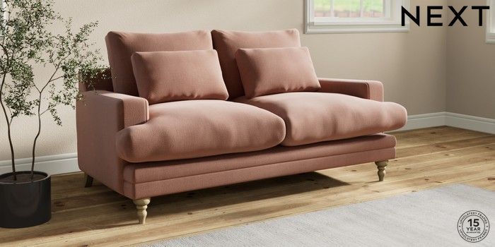 7.0.3 Buy Hutton Deep Relaxed Sit 3 Seater Small Sofa Relaxed Linen Look Light Rust Brown Country Turned - Light from the Next UK online shop Click here to use our accessible website