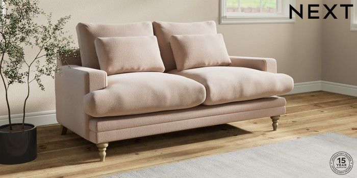 7.0.3 Buy Hutton Deep Relaxed Sit 3 Seater Small Sofa Relaxed Linen Look Mid Natural Country Turned - Light from the Next UK online shop Click here to use our accessible website