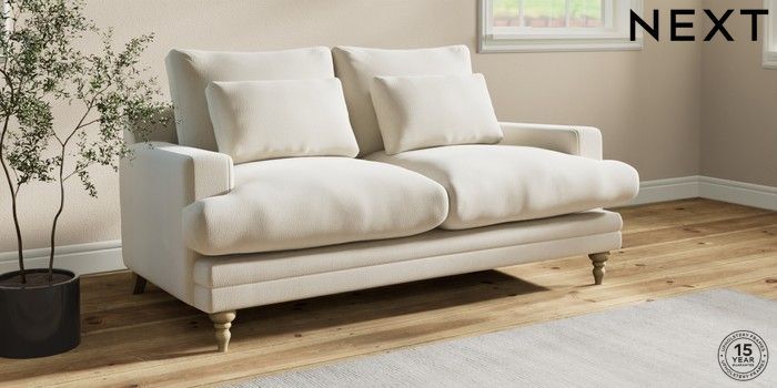 7.0.3 Buy Hutton Deep Relaxed Sit 3 Seater Small Sofa Relaxed Linen Look Oyster Country Turned - Light from the Next UK online shop Click here to use our accessible website