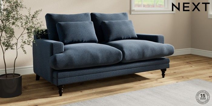7.0.3 Buy Hutton Deep Relaxed Sit 3 Seater Small Sofa Ripple Chenille Dark Blue Country Turned - Dark from the Next UK online shop Click here to use our accessible website