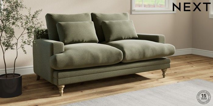 7.0.3 Buy Hutton Deep Relaxed Sit 3 Seater Small Sofa Ripple Chenille Mid Moss Green Country Turned - Light from the Next UK online shop Click here to use our accessible website