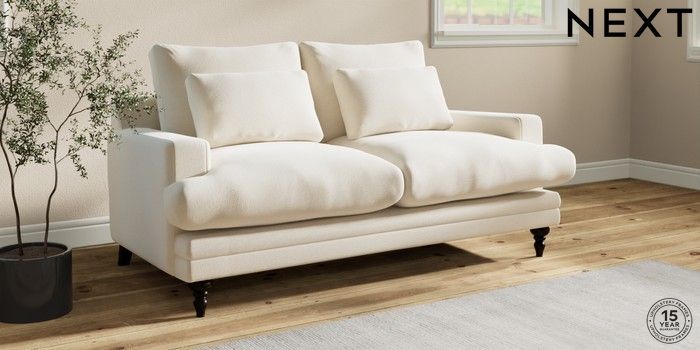 7.0.3 Buy Hutton Deep Relaxed Sit 3 Seater Small Sofa Ripple Chenille Oyster Country Turned - Dark from the Next UK online shop Click here to use our accessible website