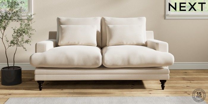 6.12.1 Buy Hutton Deep Relaxed Sit 3 Seater Small Sofa Studio Chenille Oyster Country Turned - Dark from the Next UK online shop Click here to use our accessible website