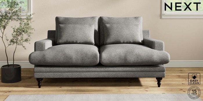 6.12.1 Buy Hutton Deep Relaxed Sit 3 Seater Small Sofa Tweedy Blend Easy Clean Dark Grey Country Turned - Dark from the Next UK online shop Click here to use our accessible website