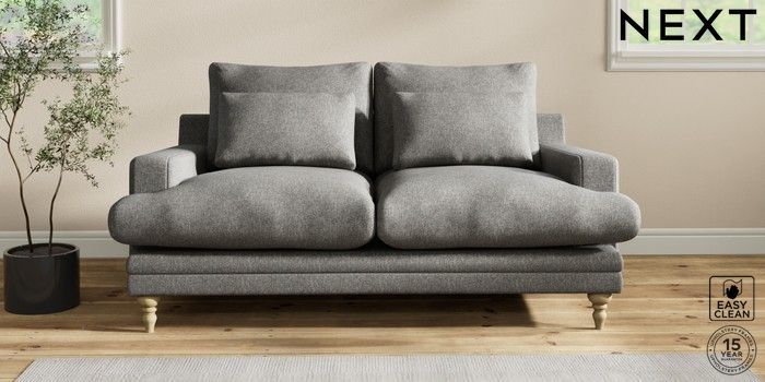 6.12.1 Buy Hutton Deep Relaxed Sit 3 Seater Small Sofa Tweedy Blend Easy Clean Dark Grey Country Turned - Light from the Next UK online shop Click here to use our accessible website