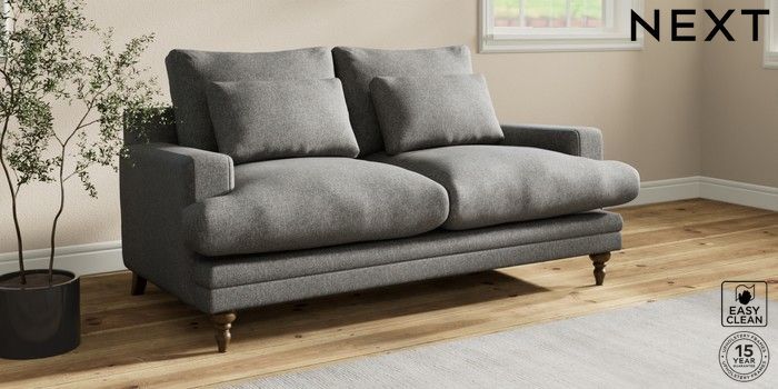 7.0.3 Buy Hutton Deep Relaxed Sit 3 Seater Small Sofa Tweedy Blend Easy Clean Dark Grey Country Turned - Mid from the Next UK online shop Click here to use our accessible website