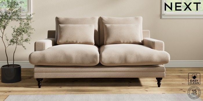 6.12.1 Buy Hutton Deep Relaxed Sit 3 Seater Small Sofa Tweedy Blend Easy Clean Light Dove Natural Country Turned - Dark from the Next UK online shop Click here to use our accessible website