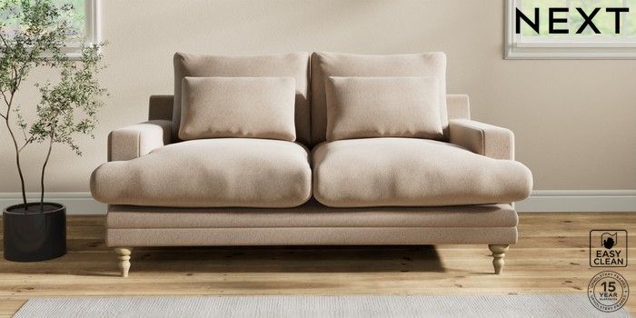 6.12.1 Buy Hutton Deep Relaxed Sit 3 Seater Small Sofa Tweedy Blend Easy Clean Light Dove Natural Country Turned - Light from the Next UK online shop Click here to use our accessible website