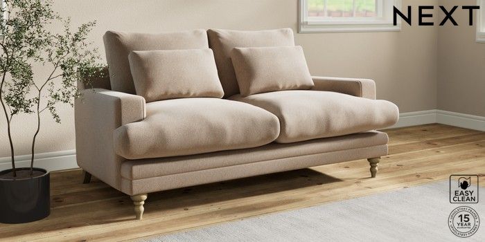 7.0.3 Buy Hutton Deep Relaxed Sit 3 Seater Small Sofa Tweedy Blend Easy Clean Light Dove Natural Country Turned - Light from the Next UK online shop Click here to use our accessible website