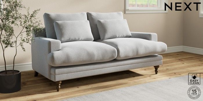 7.0.3 Buy Hutton Deep Relaxed Sit 3 Seater Small Sofa Tweedy Blend Easy Clean Light Silver Grey Country Turned - Mid from the Next UK online shop Click here to use our accessible website