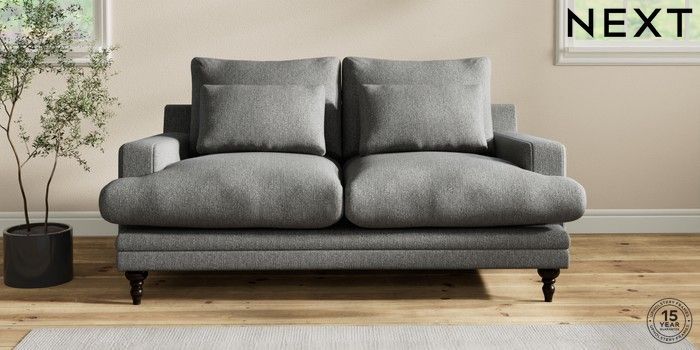 6.12.1 Buy Hutton Deep Relaxed Sit 3 Seater Small Sofa Tweedy Chenille Dark Grey Country Turned - Dark from the Next UK online shop Click here to use our accessible website