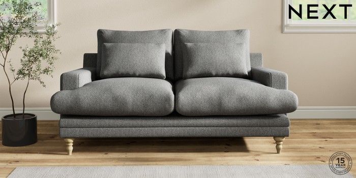 6.12.1 Buy Hutton Deep Relaxed Sit 3 Seater Small Sofa Tweedy Chenille Dark Grey Country Turned - Light from the Next UK online shop Click here to use our accessible website