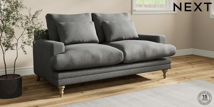 7.0.3 Buy Hutton Deep Relaxed Sit 3 Seater Small Sofa Tweedy Chenille Dark Grey Country Turned - Light from the Next UK online shop Click here to use our accessible website