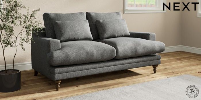 7.0.3 Buy Hutton Deep Relaxed Sit 3 Seater Small Sofa Tweedy Chenille Dark Grey Country Turned - Mid from the Next UK online shop Click here to use our accessible website