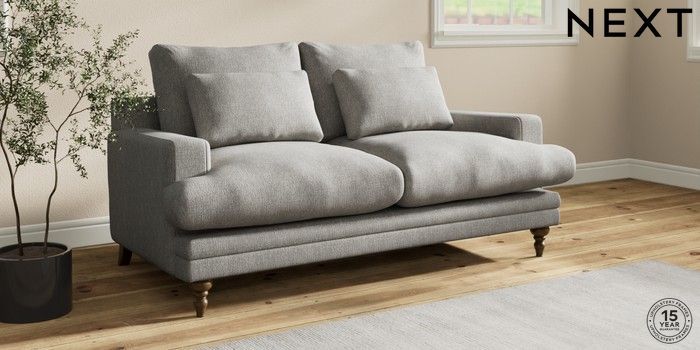 7.0.3 Buy Hutton Deep Relaxed Sit 3 Seater Small Sofa Tweedy Chenille Mid Grey Country Turned - Mid from the Next UK online shop Click here to use our accessible website