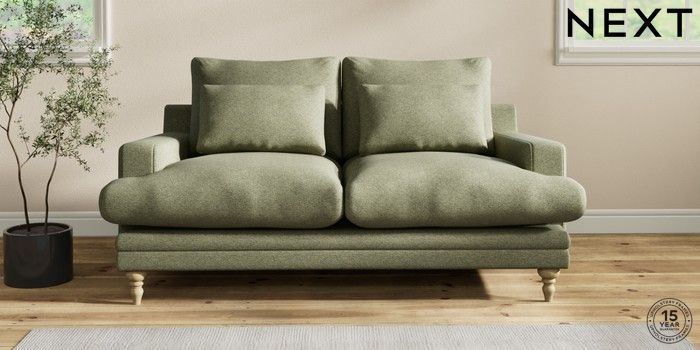 6.12.1 Buy Hutton Deep Relaxed Sit 3 Seater Small Sofa Tweedy Chenille Mid Moss Green Country Turned - Light from the Next UK online shop Click here to use our accessible website